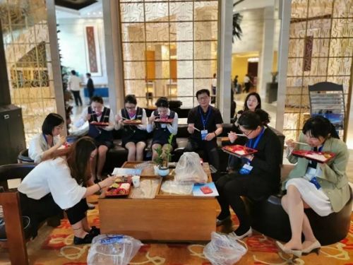 忙碌的他们只能简单吃点盒饭来对付一下