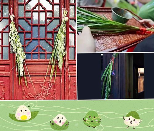 挂艾叶、菖蒲也是端午节的习俗之一。在端午节,家家都以菖蒲作剑,插于门楣,有驱魔祛鬼之神效。也有人将艾叶悬于堂中,或剪为虎形争相佩戴,以僻邪驱瘴。