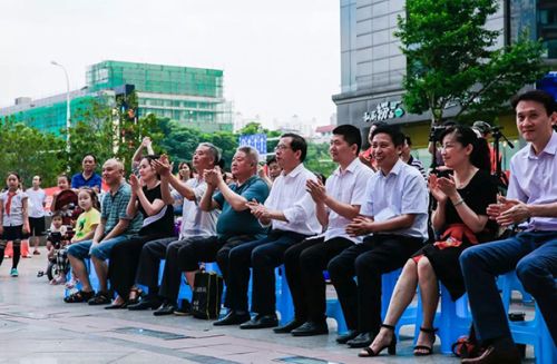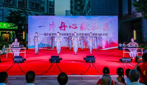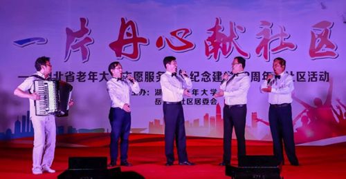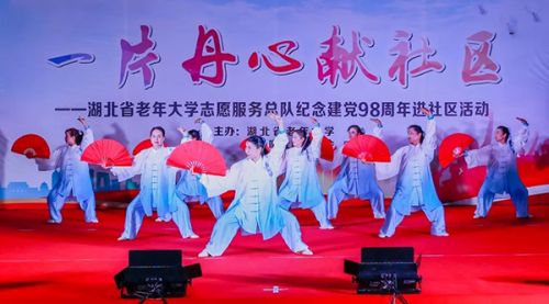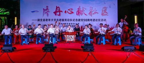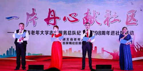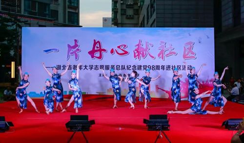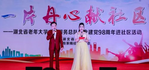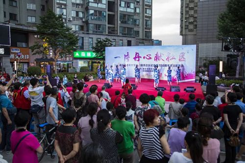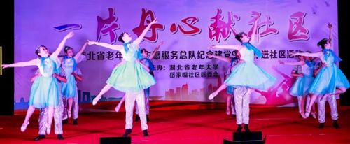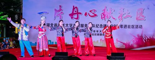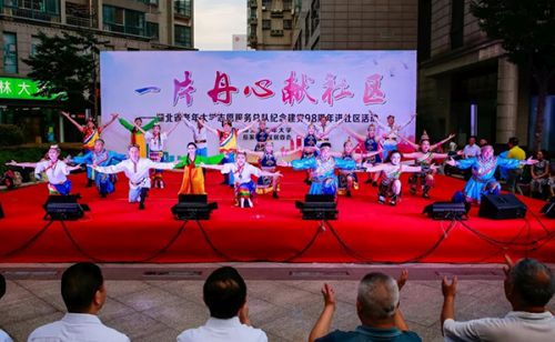 晚上7点,还举办了“一片丹心献社区”文艺演出,共12个节目形式多样、文体结合,齐聚了歌唱、舞蹈、器乐合奏、太极武术等多项类别。男声四重唱《人民军队忠于党》、配乐诗朗诵《读中国》等节目表达了对祖国的爱、对党的忠诚。数来宝《学雷锋》是对初心的回顾、对老一辈先锋模范的敬意。黄梅戏《月上眉梢》、太极表演《武当情.太极韵》等节目是对中华传统文化的赞扬、对非物质文化遗产的歌颂。演出在舞蹈《我和我的祖国》中画上圆满的句号。