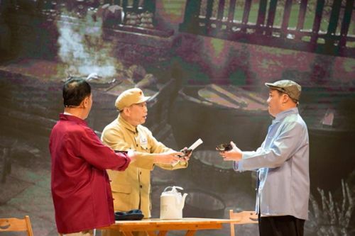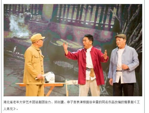 赏读会以发表在《长江文艺》上的经典作品为表现内容,融合诗文朗读演诵、情景剧表演、电视剧配音等多种形式,形象生动地勾勒出《长江文艺》70年来的历史足迹和经典之作。我校话剧分团团员徐力、郑剑鹰、申子言表演的情景剧《工人弟兄》,马今生、周向红演诵的作品《1987年的浆水和酸菜》受到观众的一致好评。