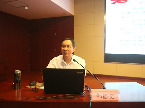 在历时两个小时的讲座中,邹德文从共和国经济70年三个阶段、共和国经济70年十大成就和共和国经济70年十条经验三方面讲述了中国经济70年来的变化,着重讲述了共和国经济70年十大成就,以及辉煌成就背后的十条经验。邹教授的报告既有理论分析,又有历史思考和现实研究,条理清楚、观点明确,详细解读了共和国经济70年来取得巨大成功的深层次原因,使与会人员对共和国70年经济的发展脉络有了更深的认识。